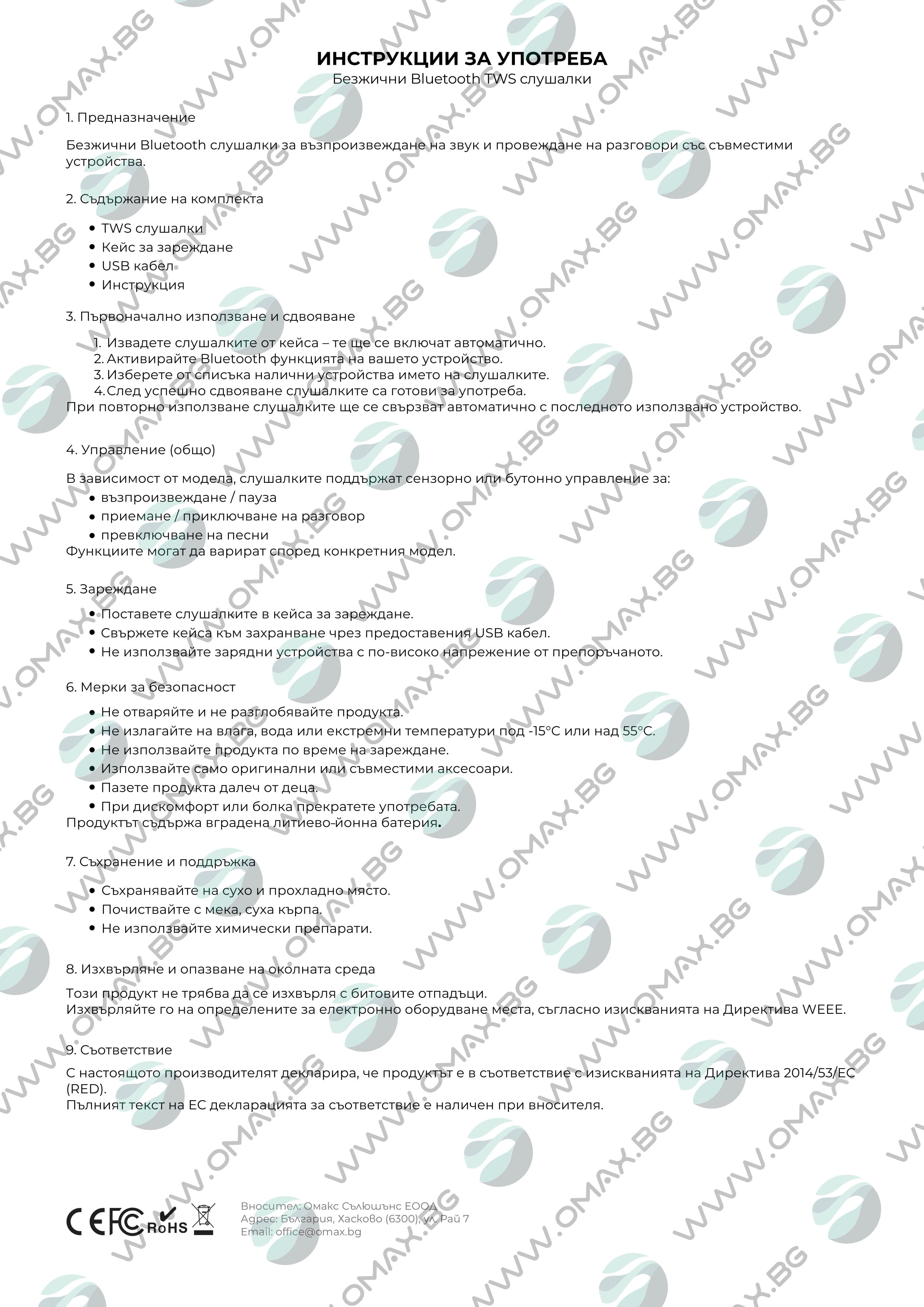 * Мощност на Bluetooth предавателя: <13 dBm (EIRP).