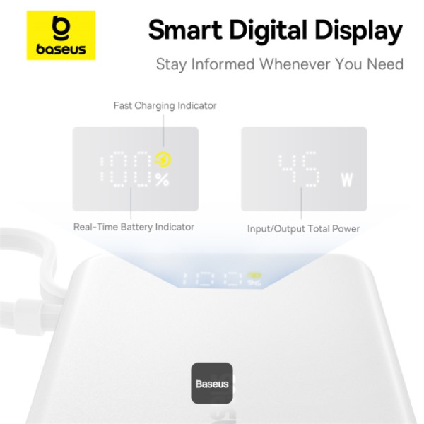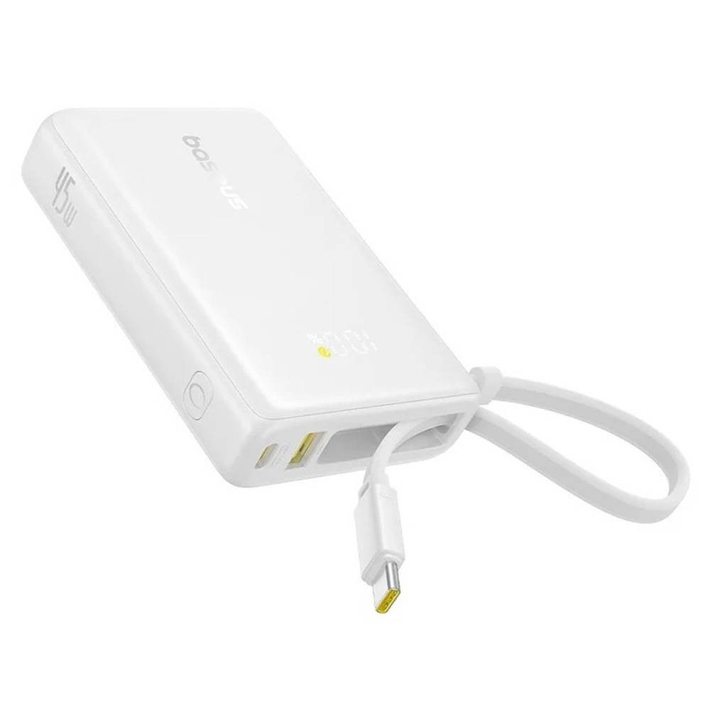 BASEUS Power Bank 10000 mAh, 45W + вграден кабел C, PicoGo /бял/ - P10076803213-00