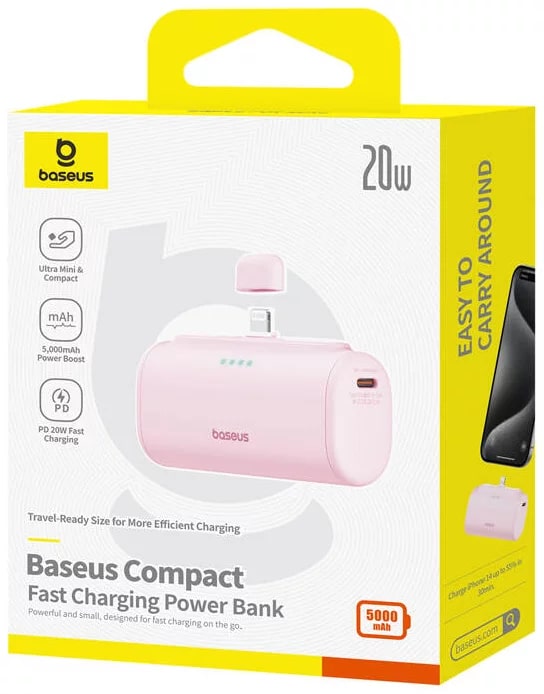 BASEUS Power Bank 5000 mAh 20W Lightning + USB-C /розов/ - P10068307413-00