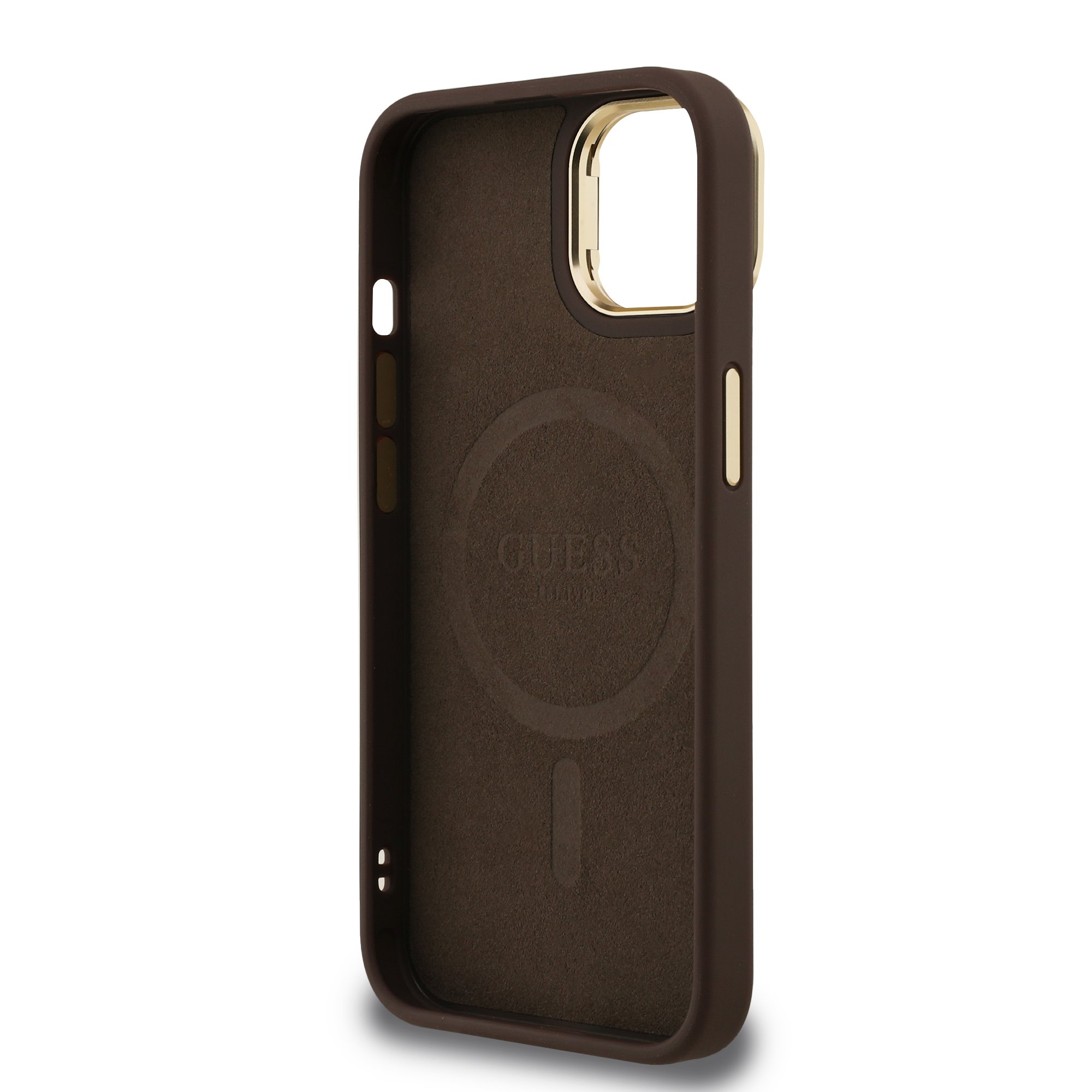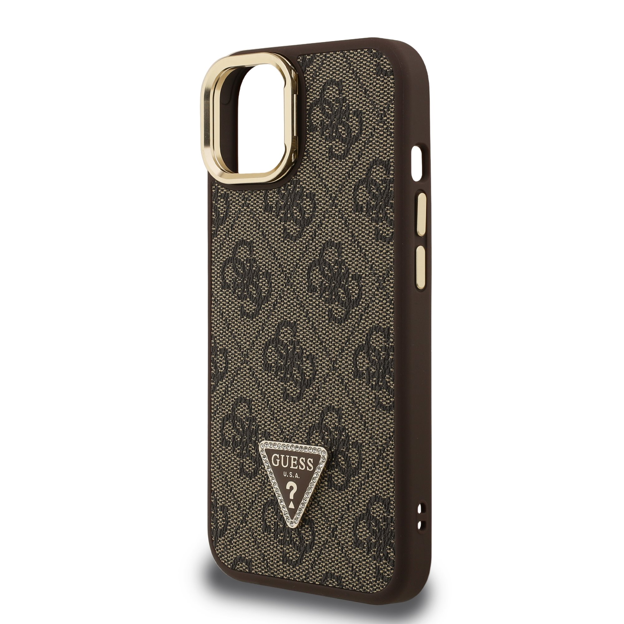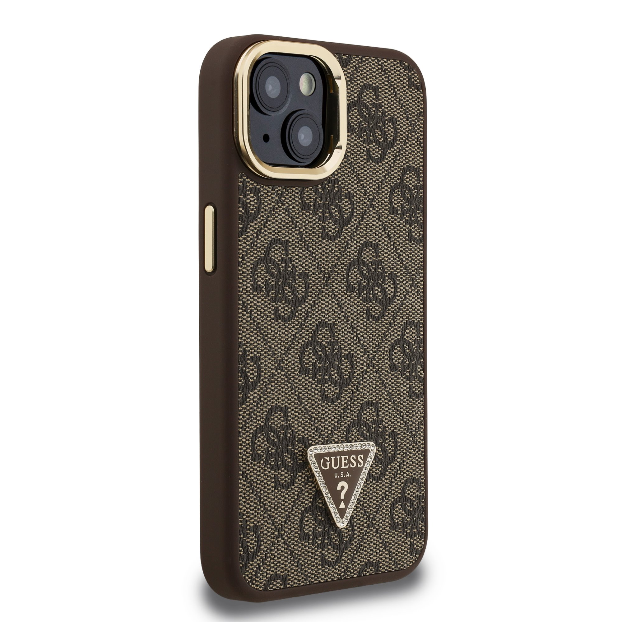 GUESS Калъф Apple iPhone 14,PU 4G Strass Triangle Logo Stand Camera Frame MagSafe, /кафяв/ - GUHMP14SPCS4GPTW